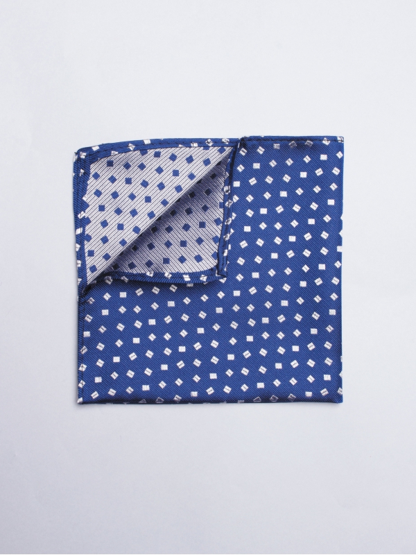 Mix the classic and modern style with this blue pocket square with square patterns. Position it in your black suit pocket for a guaranteed effect.