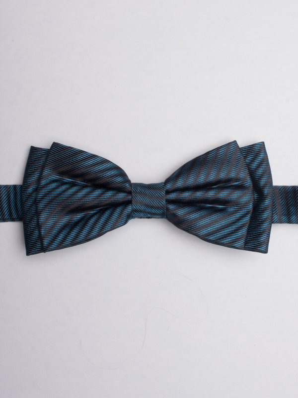 Coton Doux Uniex Bowtie With Black And Peacock Blue Stripes