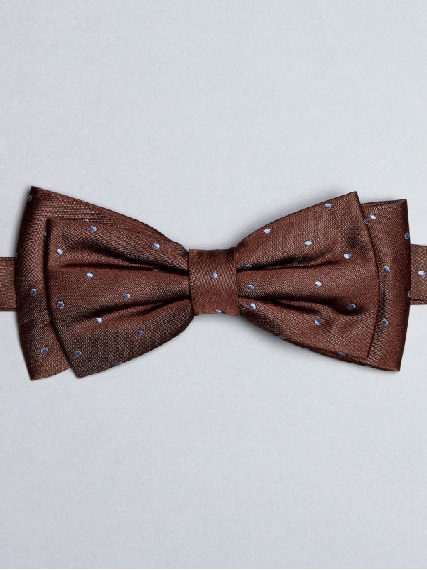 Add good taste to your wardrobe thanks to this chocolate silk bow tie. Its sky blue dots will seduce massively and can be worn with a solid shirt and raw denim. Seduction guaranteed.
