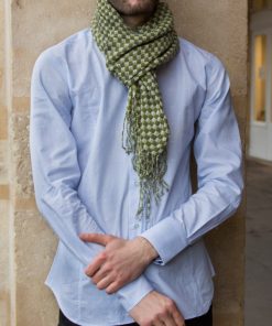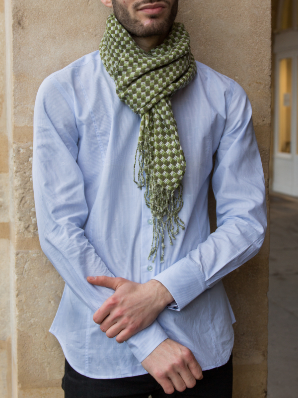 Coton Doux Uniex Green Checkerboard Print Scarf With Bangs