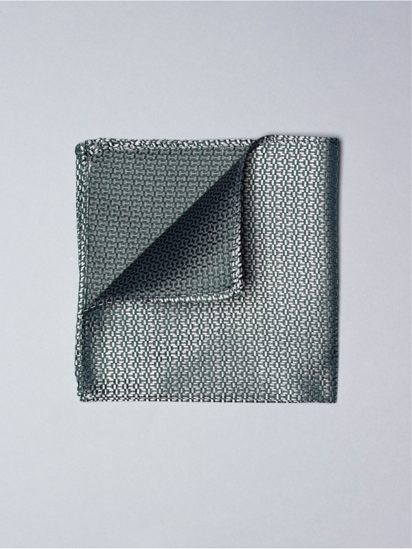 Golden rule: pair your patterned accessories with solid outfits. This silk pocket has an emboss effect, with geometric motives and green and grey highlights. Wear it with a grey suit for a sophisticated and unusual look.