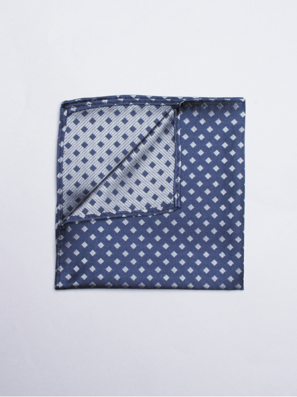 Do you wish to be original and classy? Adopt this navy blue pocket square with grey squares. It will add a touch of refinement to your black suits.
