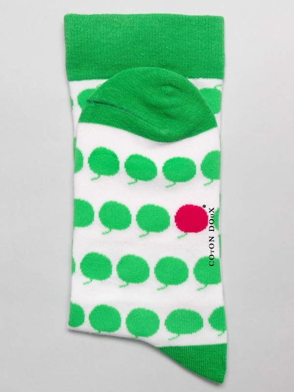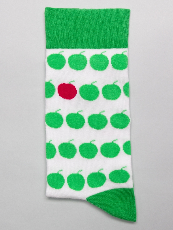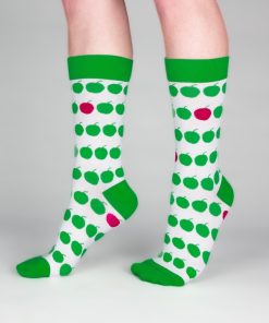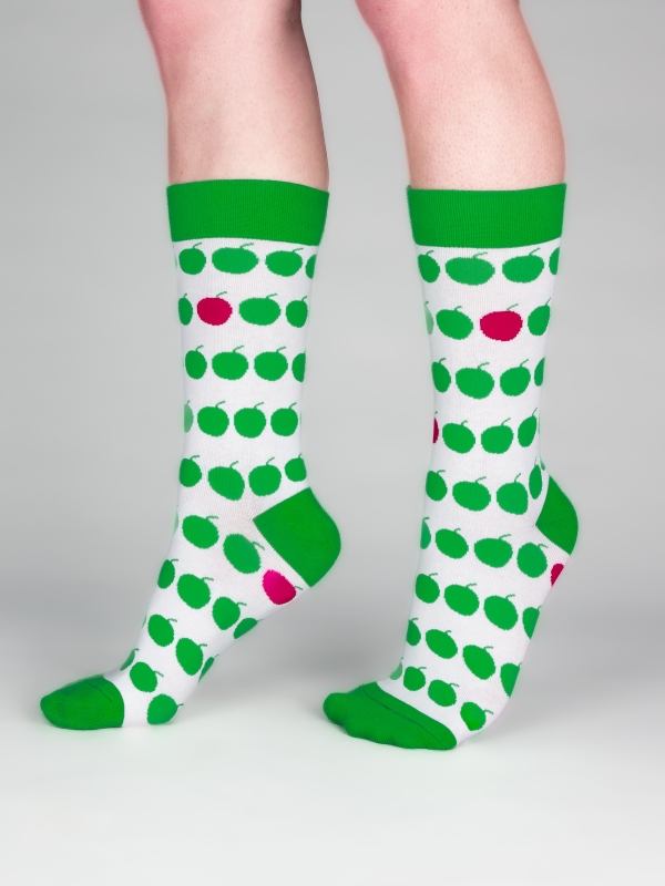 Step into a world of playful elegance with our apple-patterned socks. Each pair is like a bite of crisp, fresh style, blending fruity fun with cozy comfort. Perfect for adding a touch of whimsy to your outfit. Its bright shades between green and pink will undoubtedly enhance a casual look whith white sneakers.The model wears a size 38-41.