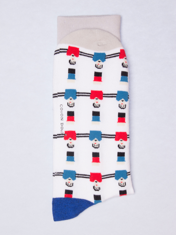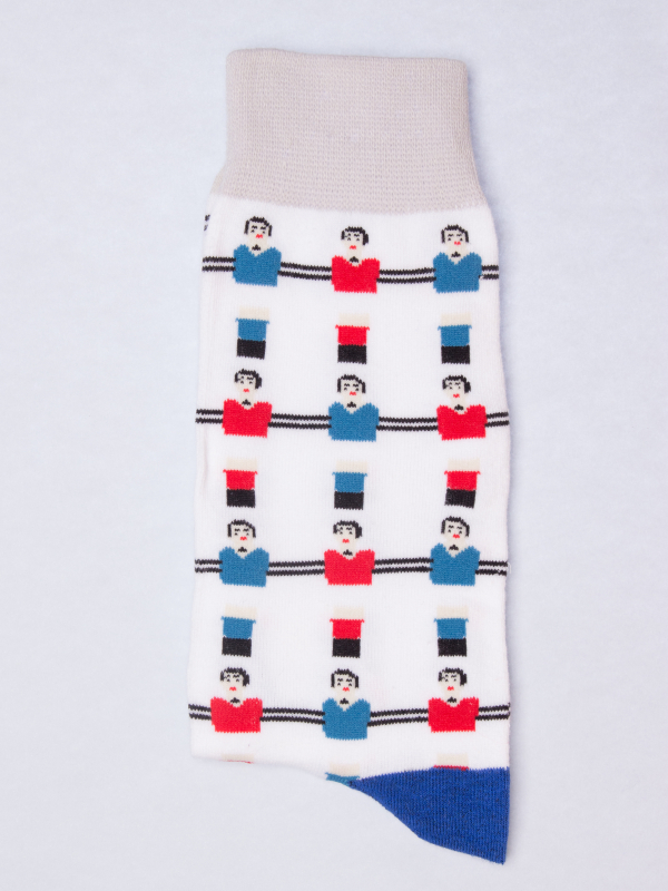 Here is a paire of socks for all the fans of football! With this baby foot patterned socks full of humor and its tricolor shades, they will perfectly match raw jeans and a navy blue blazer to break the classic codes. The ball is in your court!