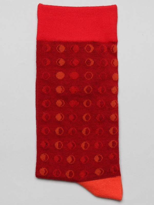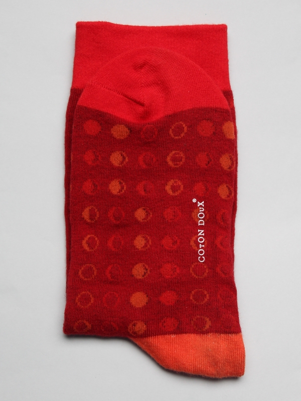 Coton Doux Uniex Socks With Moon Pattern On Red Background