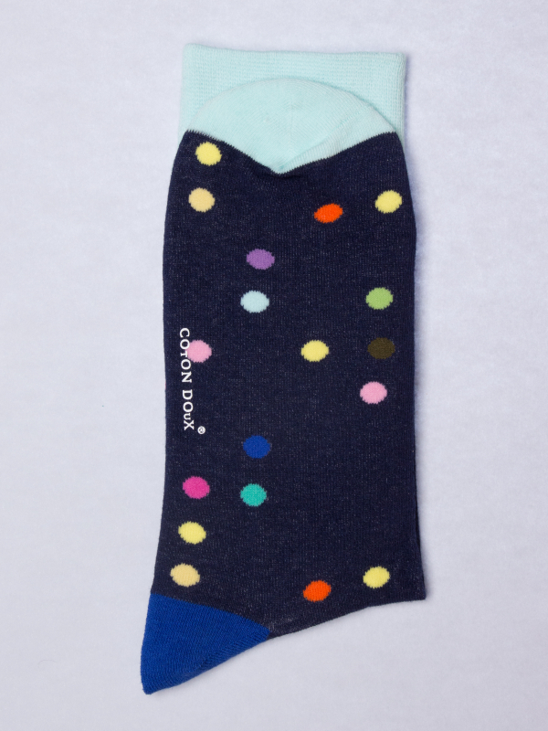 Coton Doux Uniex Socks With Multicolor Dot Blue Pattern