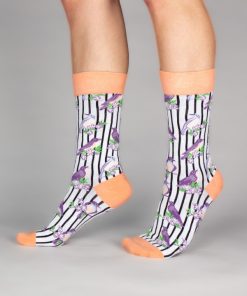 Celebrate the beauty of nature with these enchanting socks adorned with playful tits motifs. Elegantly scattered across the fabric and highlighted by gentle peach accents at the cuffs and toes, they’re ideal for a leisurely Sunday in the countryside. Team them with white trainers to let the charming birds subtly enhance your style.The model wears a size 38-41.