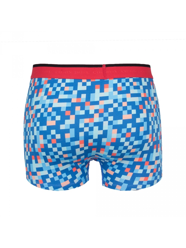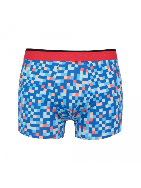 Let yourself be tempted by these pixel printed trunks, at the edge of modernity! The dark red waistband is a little extra. Their softness and elasticity offers you ultimate comfort both morning and night. 93% cotton and 7% spandex.