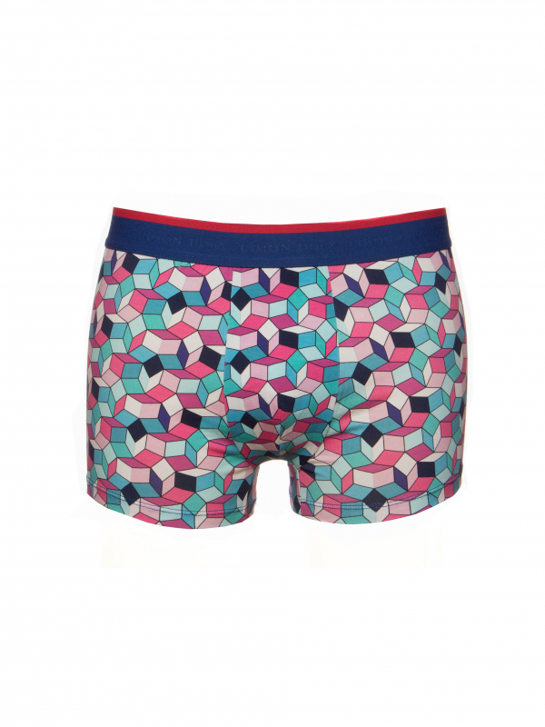 Do you feel like 3D geometric pattern? This boxer with cubic pattern was made for you! Optical illusion guaranteed ! Its pink, violet, turquoise colors will make your cloudy mornings happier.