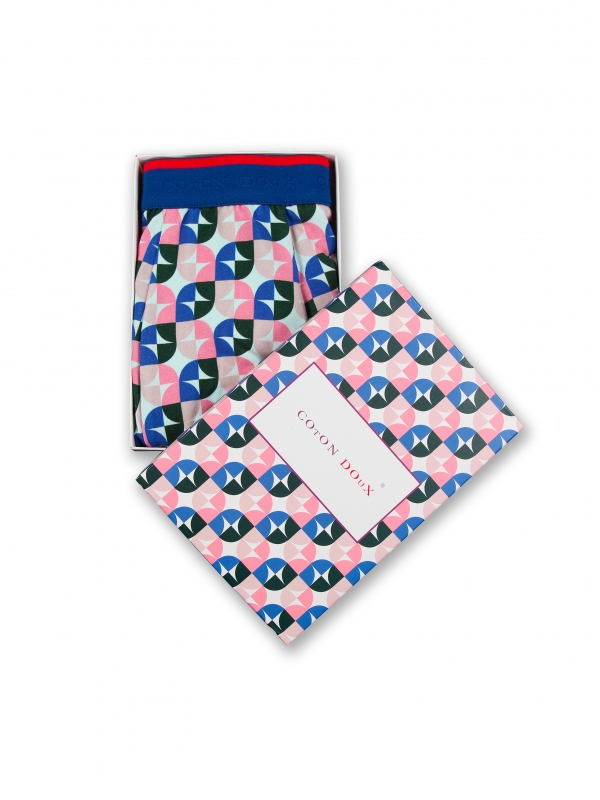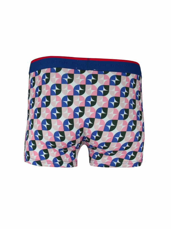 These blue and pink two principal tones geometric trunks are made with soft cotton and a touch of elastane. Crafted for a comfortable fit, it showcases a comfort logo waistbands too to get the perfect balance for support. This print looks good from any angle with the bright youth color.