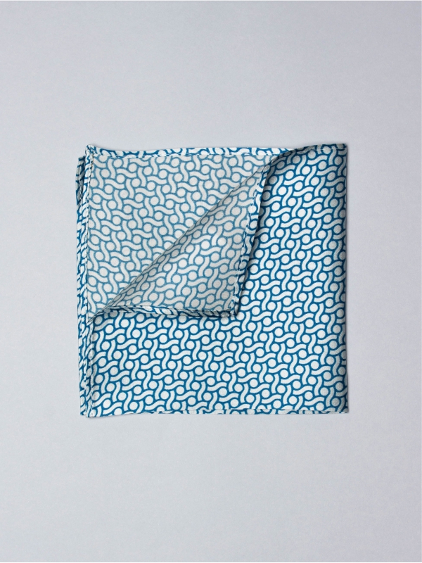 The blue and white notes of this printed pocket will give a geometrical and unusual touch to your grey suits. Success elegance and trendiness.