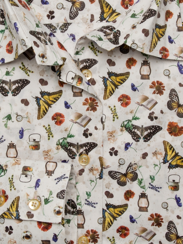 Celebrate pastoral elegance with our Bucolic Print shirt, featuring enchanting countryside motifs that evoke serene rustic charm. The classic collar and double-button cuffs add a touch of refinement, while the slim fit provides a modern, tailored look. Ideal for both casual outings and relaxed gatherings. Pair it with dark denim jeans and brown leather loafers to achieve a timeless, countryside-inspired ensemble.