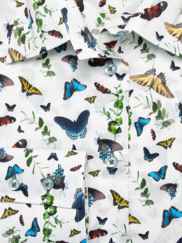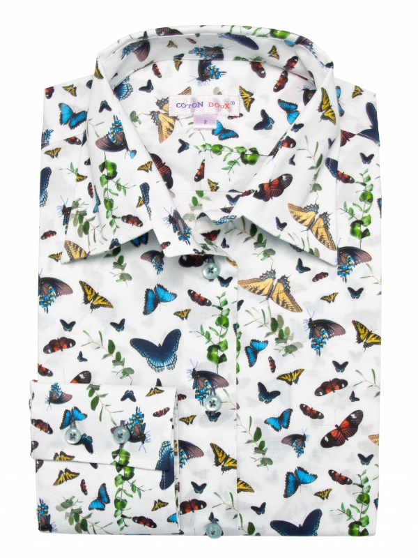 If you wanted to understand the butterfly effect, this print might help! With a white background, you’ll love wearing these little beasts which always look sophisticated just like the classic collar and double-button cuffs on this shirt. Match with denim jeans or under a blue navy suit for maximum effect. One, two, three and you won’t be able to do without it!