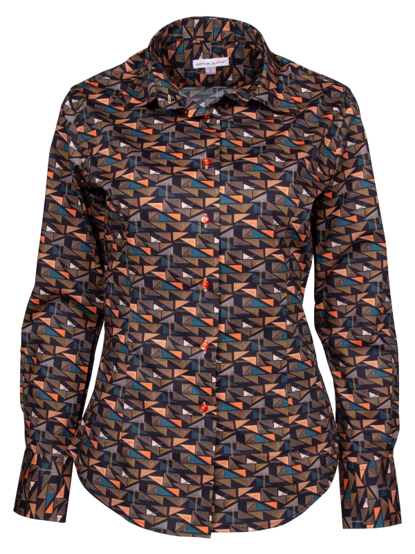 Elevate your style with our Triangle Print shirt, where bold geometric patterns infuse originality and modernity. This shirt features an eye-catching triangle design that adds a distinctive edge to any outfit. The classic collar and double-button cuffs offer a touch of refined elegance, while the slim fit ensures a sleek, tailored silhouette. Ideal for making a statement, pair it with a black suit and leather shoes for a sharp, sophisticated look.
