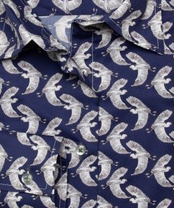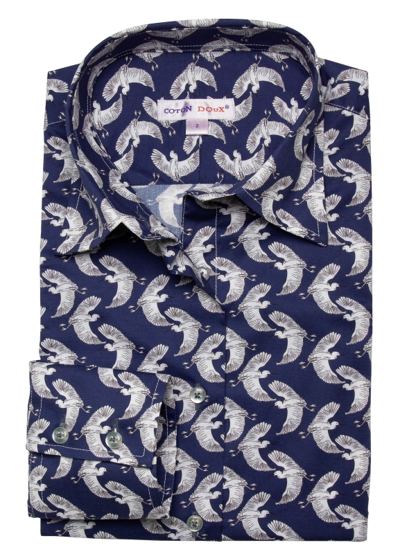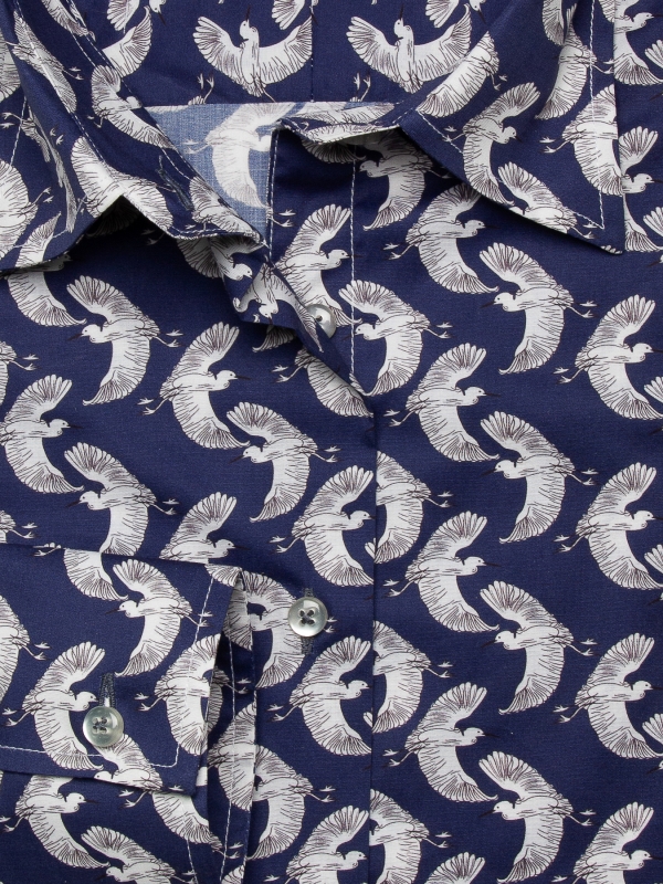 Elevate your wardrobe with our herons print shirt, adorned with majestic heron motifs that evoke tranquility and grace. Featuring a classic collar and double-button cuffs, this shirt brings a refined touch to any ensemble. The slim fit offers a modern, tailored silhouette, perfect for any occasion. Pair it with crisp white trousers and loafers for a fresh and polished look.