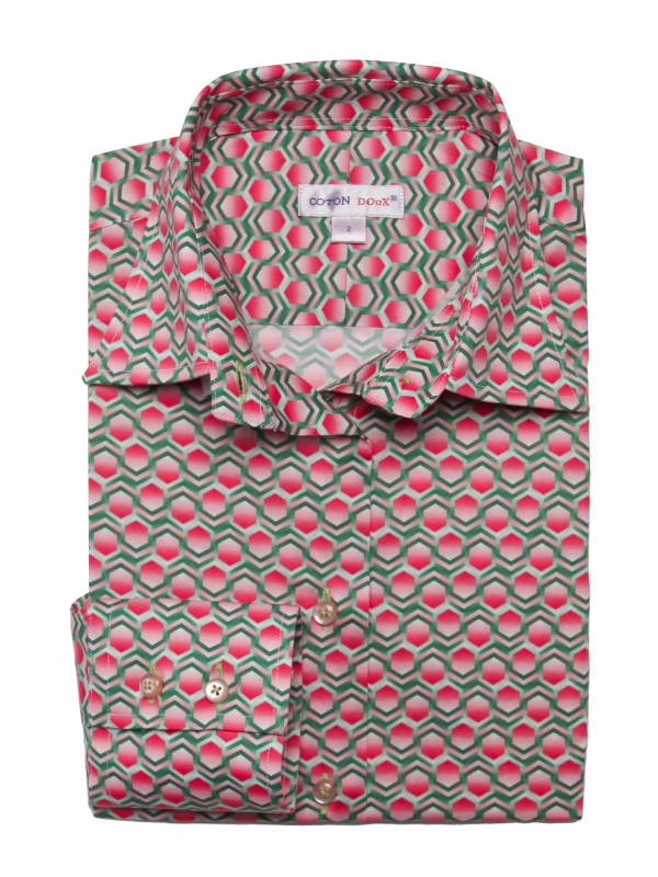 Coton Doux Women’s Fitted Shirt With Hexagons Print