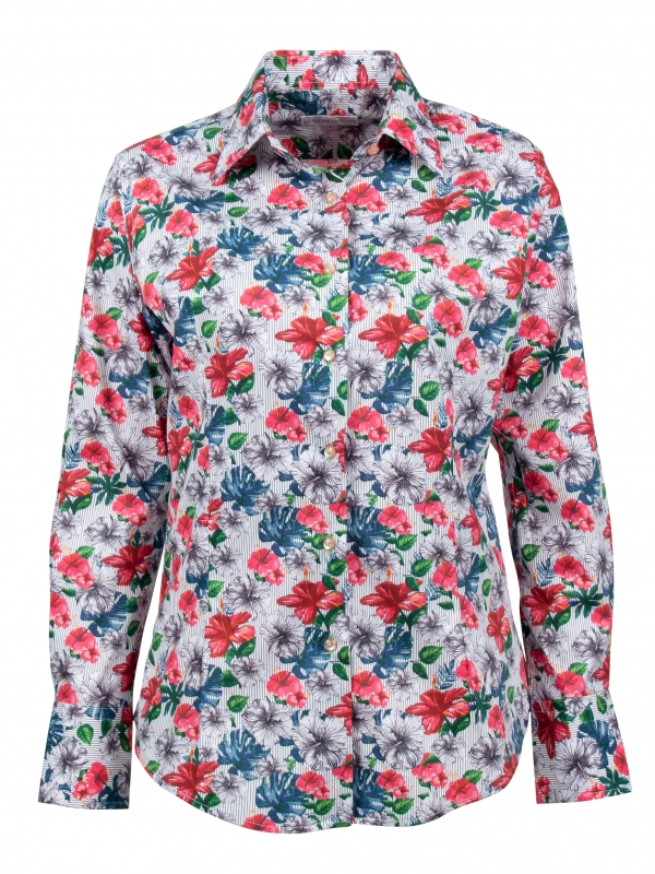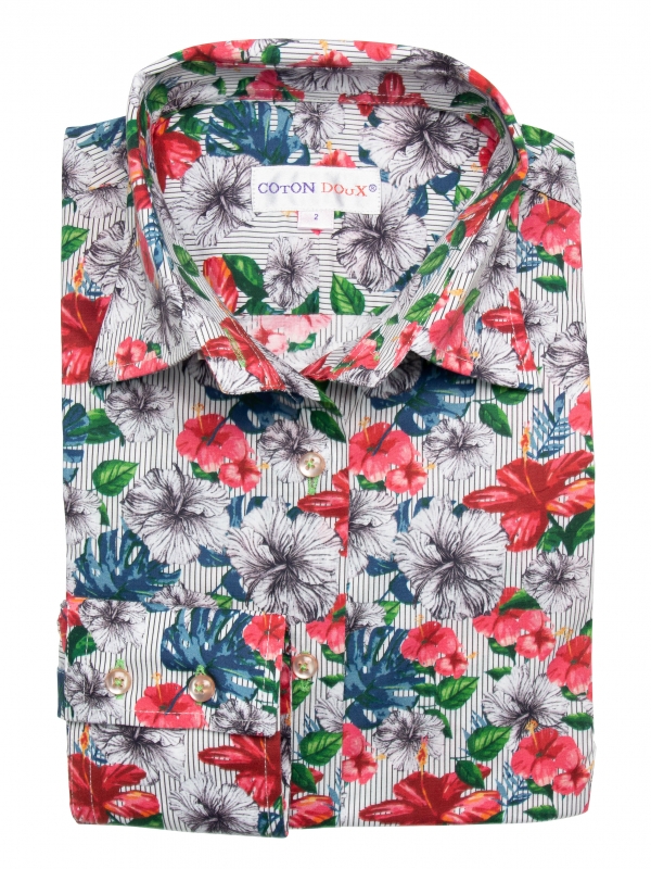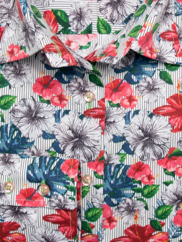 Dive into an ocean of tropical style with this hibiscus print shirt ! Its slim fit, classic collar and double-button cuffs add a touch of casual chic. Whether you’re in the office or in ‘I’m dreaming of a holiday’ mode, this shirt will take you far away, even when you’re at home. Go for originality by combining it with slim black leather trousers and leather ankle boots for an effective contrast. Pair with an oversized denim jacket for a daring touch and you’ll be ready to shine.
