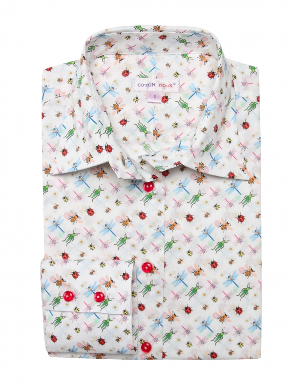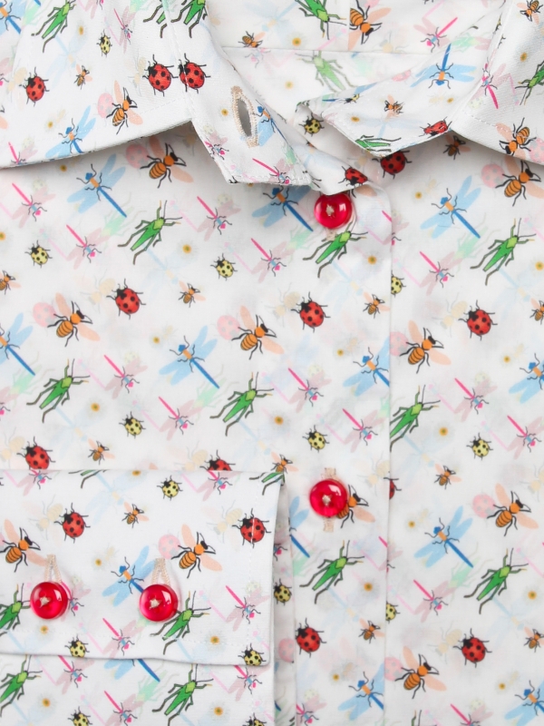Often unloved, insects are nevertheless of paramount importance! And you will give importance to this printed shirt because you hold there an essential of your summer. Indispensable because it is easy to wear and with the codes respected: classic collar, slim fit and double button cuffs. On a white background, these little colored beasts will be associated with light blue denim shorts, a chino, a suit. In short, it will make you happy!