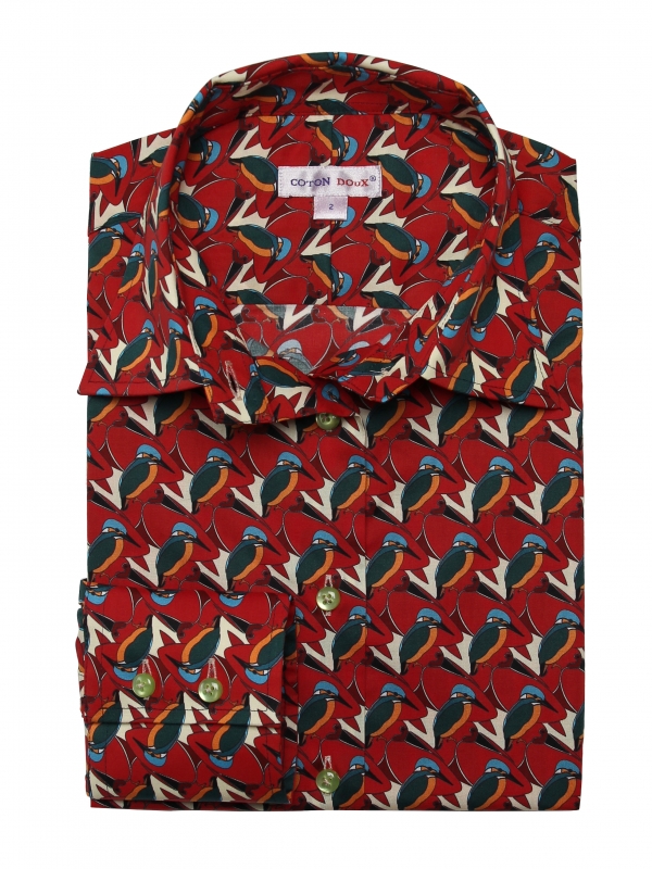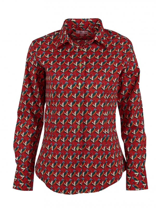 Coton Doux Women’s Fitted Shirt With Kingfishers Duo Print