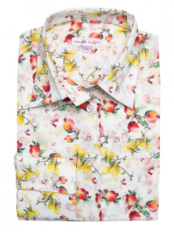 Coton Doux Women’s Fitted Shirt With Lemon And Pomegranate Print