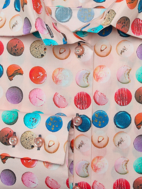 Feeling a little hungry? No reason to deprive yourself thanks to this macaroon print shirt, iconic pastries. Its classic collar and double button cuffs will make sure you can enjoy life to the fullest while contemplating your macaroons without missing a beat. Extend this great moment by pairing this slim fit shirt with a beige background and a navy suit for special occasions. You will wear it without moderation and that’s good!