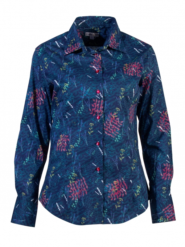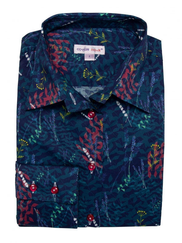 Coton Doux Women’s Fitted Shirt With Strand Of Flowers Print