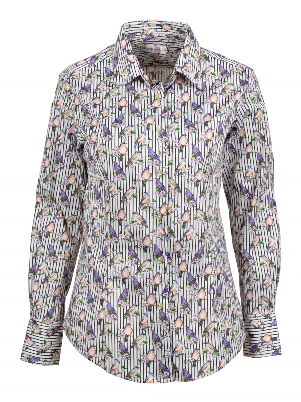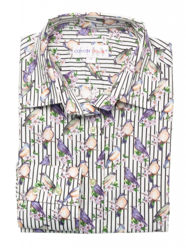 Elevate your look with this tits-print shirt that invites you to embrace the harmony of nature! Adorned with a classic collar and double-button cuffs, the tailored fit offers an elegance with a light touch. For a chic and cozy style, pair it with dark green plaid wool pants and black velvet ballet flats for optimal comfort. Complete the ensemble with a cashmere cardigan for an added touch of comfort. The titmice will add a natural charm to your look. Come celebrate the splendor of nature and let yourself be carried away by the sweet song of the titmice!