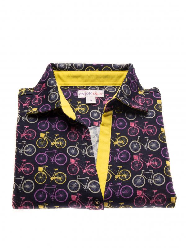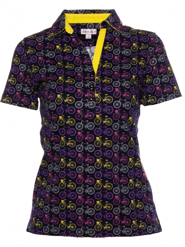 Coton Doux Women’s Slim Fit Polo With Bicycle Print