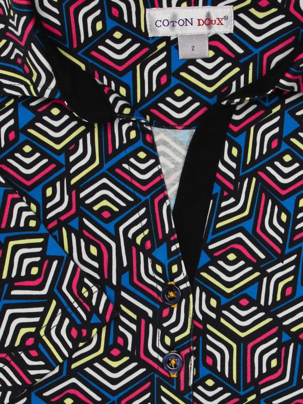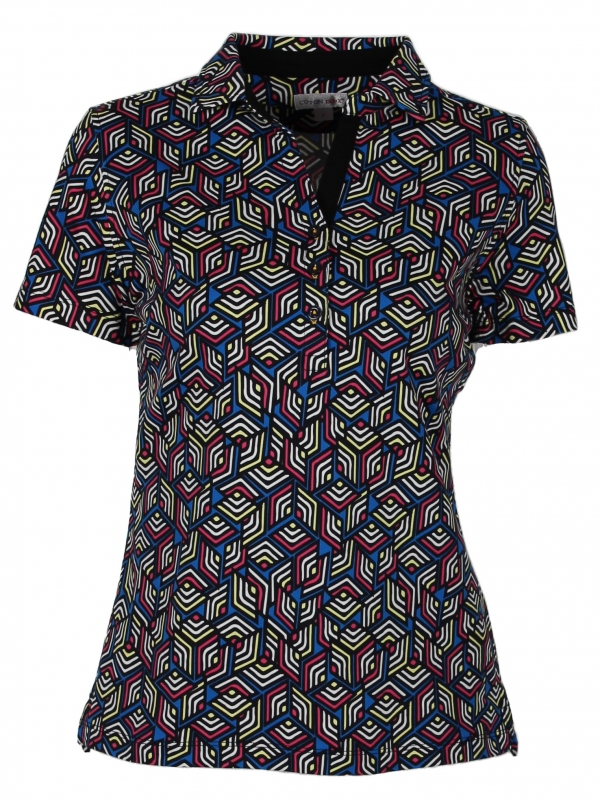 Coton Doux Women’s Slim Fit Polo With Cubes Print