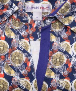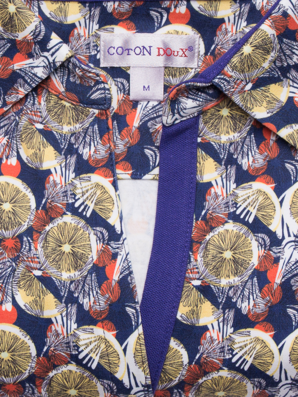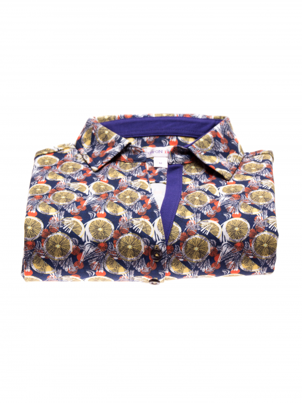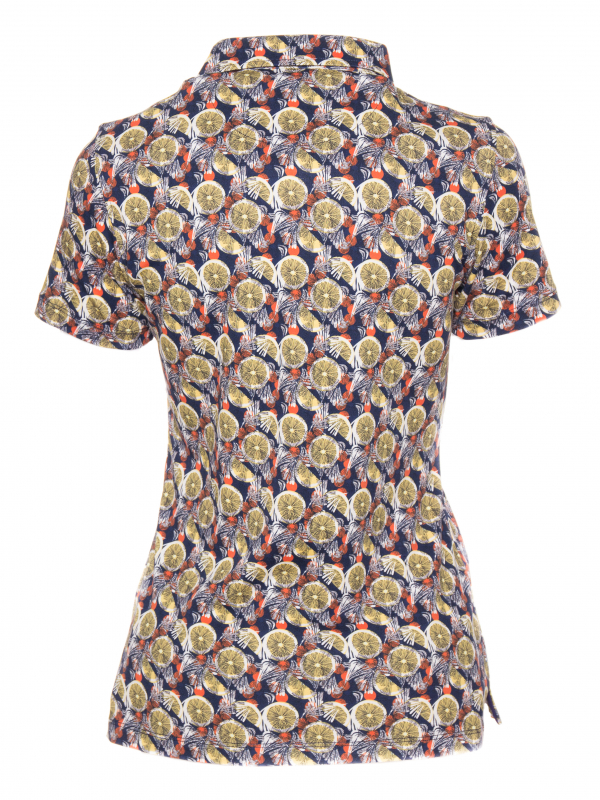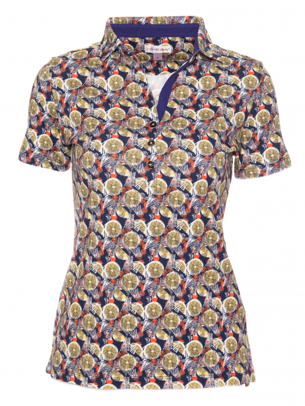 Why not a small touch of lemon in your outfit? The lemon print polo shirt made of jersey of cotton will be your best alliy for this summer! The slim fit cut, the cotton piqué collar and the three-button placket and the jersey of cotton composition are all the elements that you need to be elegant and casual at the same time. In order to optimize the contrast of the citric tones match it with white pants and shoes.