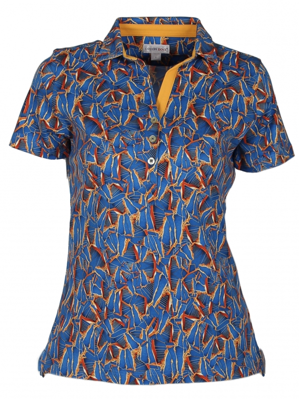 Coton Doux Women’s Slim Fit Polo With Stairs Print
