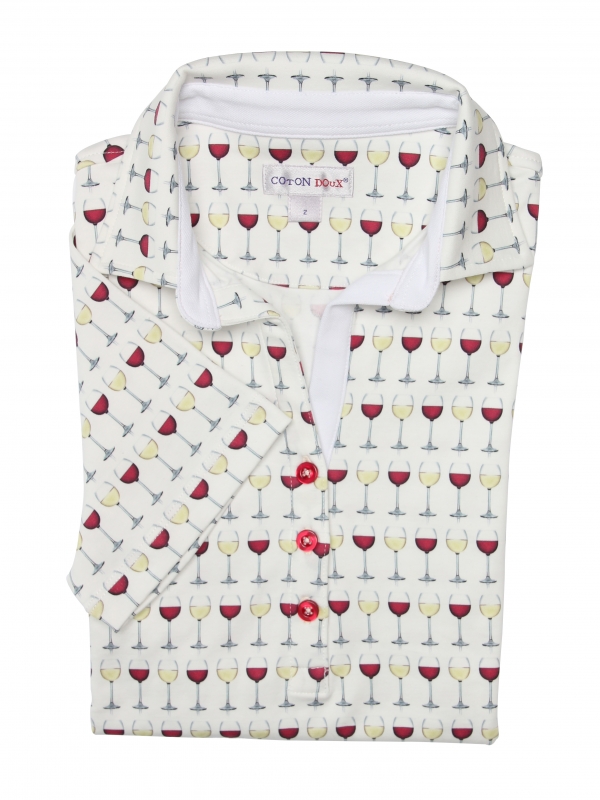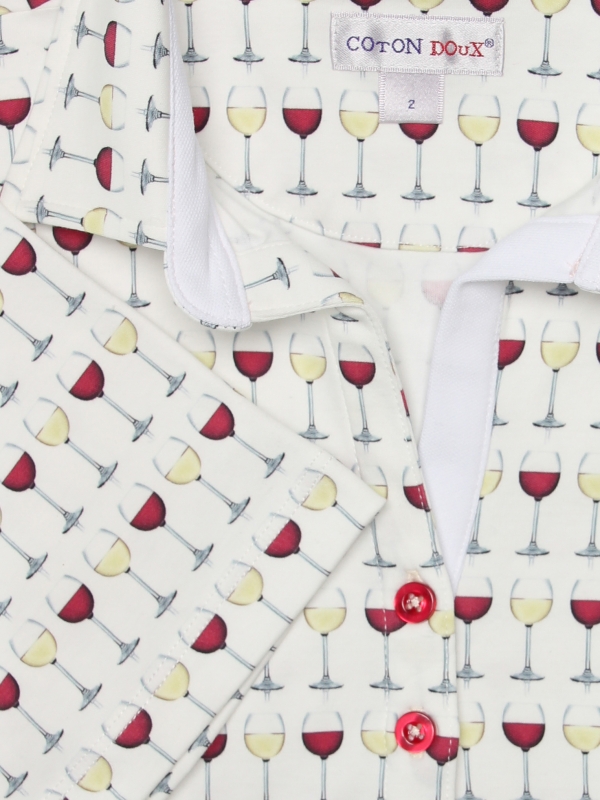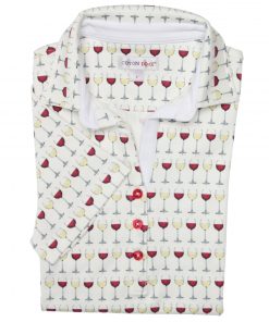 Do you love wine tasting? The polo shirt with wine glasses print will be your ally at each of your sips. The cotton piqué collar and its mercerized cotton jersey composition will be your assets to embody the elegance of the greatest houses. The three-button placket and the slim fit will show your noble traits! Brown trousers will perfectly highlight the presence of beautiful white shoes.