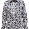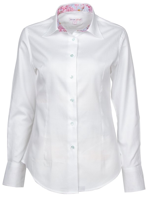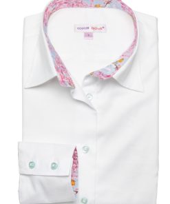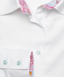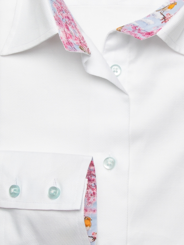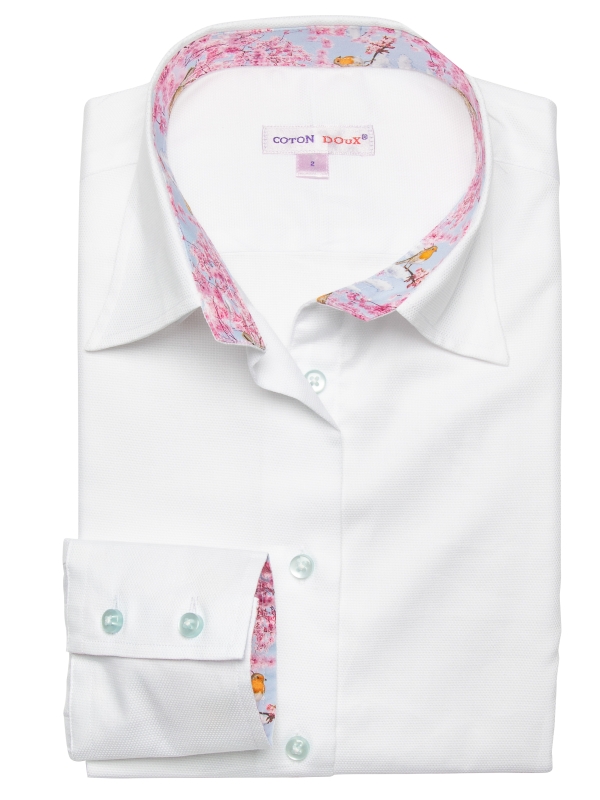 Coton Doux Women’s White Cotton Piquu00e9 Fitted Shirt With Cherry Inner Lining Print
